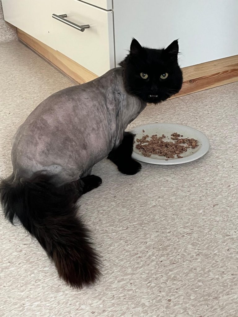 Da ihr Fell sehr verfilzt war, wurde entschieden, Flecki bei der Katzenhilfe Laupheim vorzustellen – mit der Hoffnung, ihr vielleicht ein schönes Zuhause zu ermöglichen, wenn sie sich dort einleben kann.